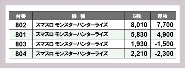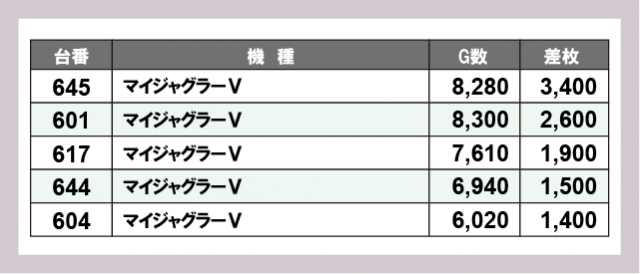 ※差枚数順に掲載しています
