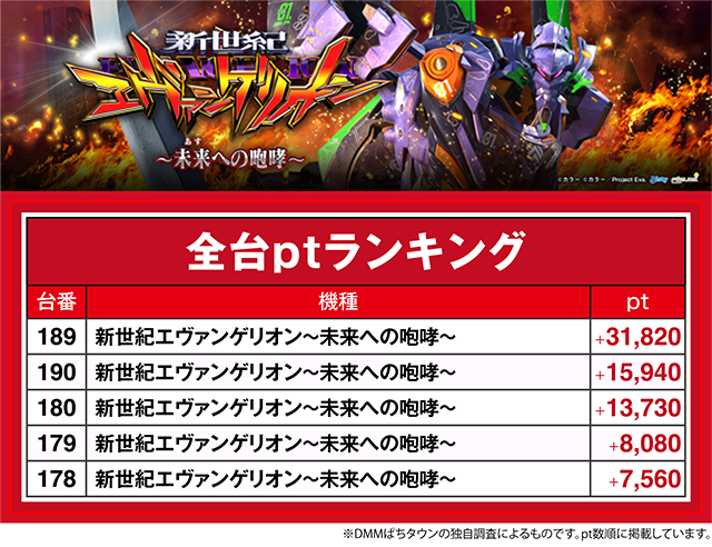 「新世紀エヴァンゲリオン~未来への咆哮~」では、189番台が31,820pt。