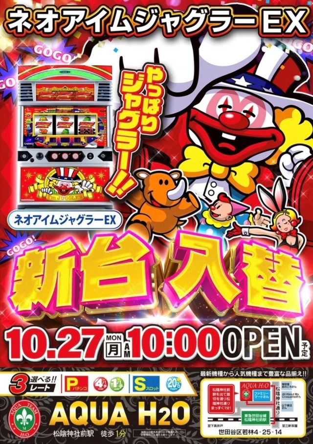 本日 新台入替 10時開店!ネオアイムジャグラー導入!
