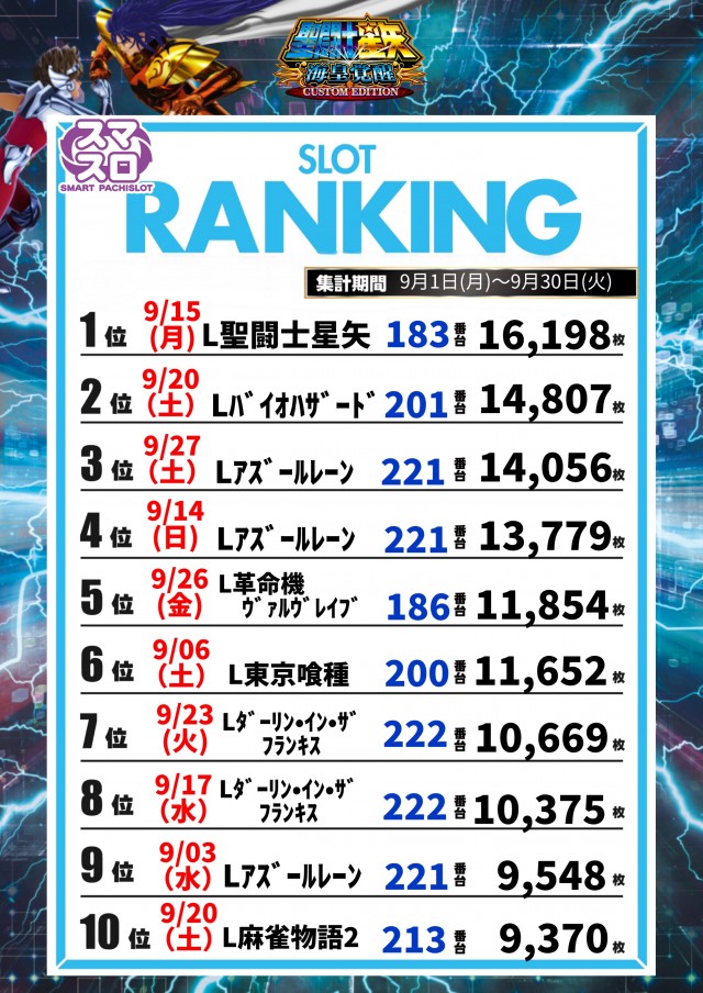 1位 10月25日(土) 2位 9月27日(土) 3位 10月11日(土)