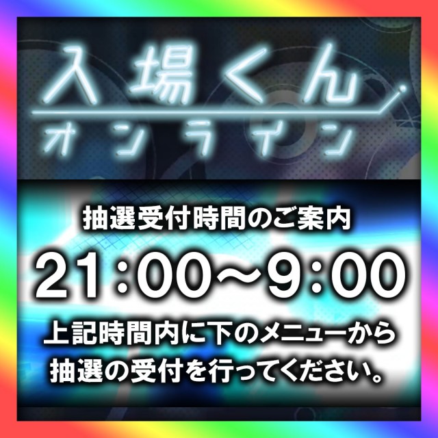 受付は入場日前日の21時から当日9時29分まで。 |