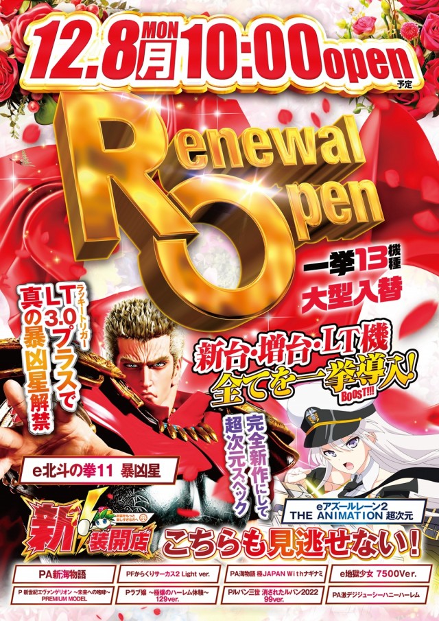 ⑫月⑨日㊋★リニューアルオープンウィーク★一挙13機種導入済