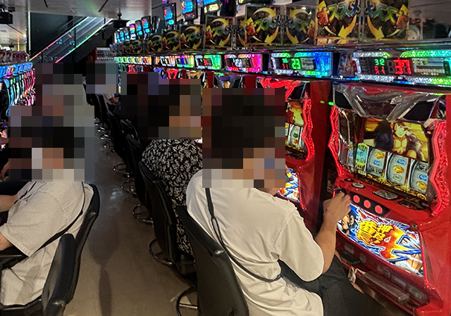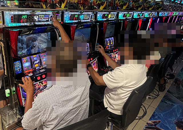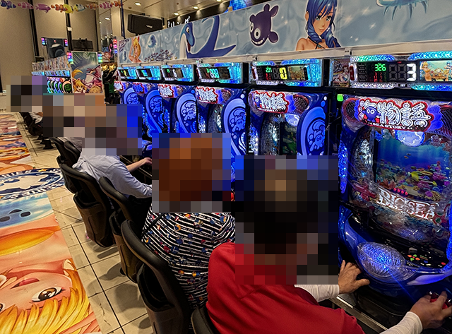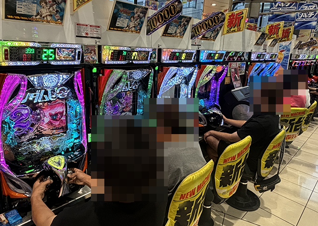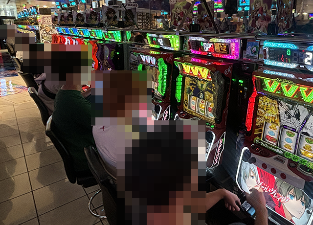 16時をまわった頃のパチスロでは、さまざまな機種が支持されており、明るい雰囲気に包まれていた。