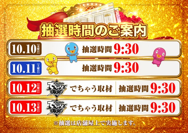 本日10月11日! このあと9時30分 入場抽選会開始!!!