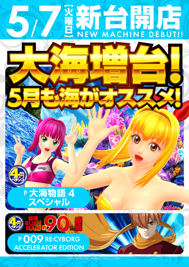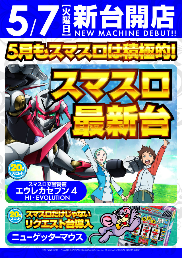 5/7新台開店!スマスロエウレカセブン!朝一から遊技OK