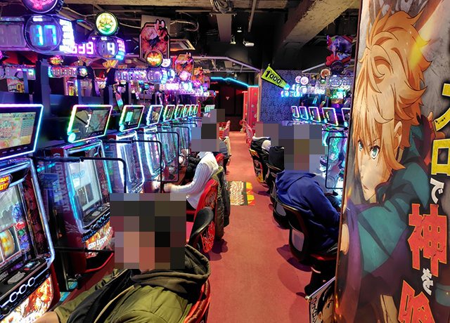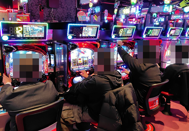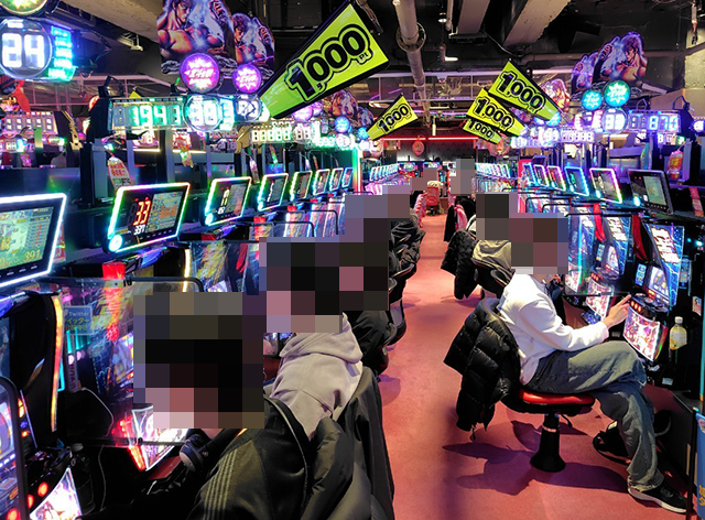 全体的に稼働率が高く、随所に笑顔で遊技を楽しむプレイヤーの姿があった。