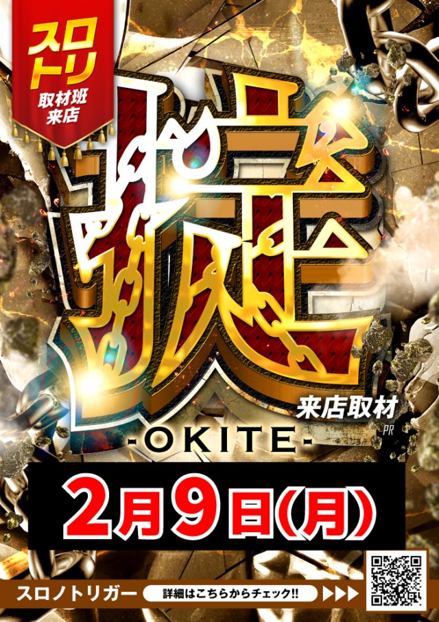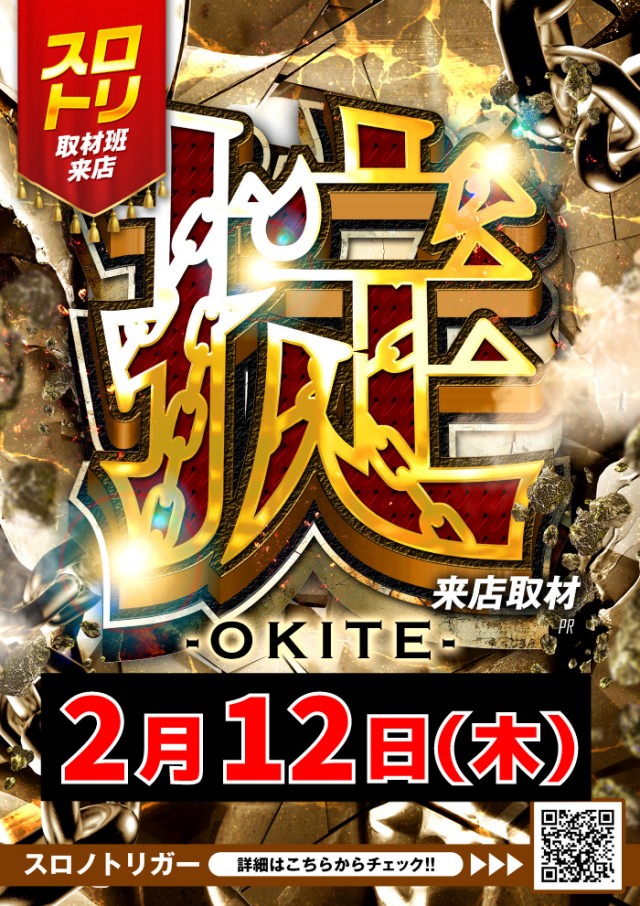🌈2.12掟-OKITE-来店取材予定 スロット抽選9:30