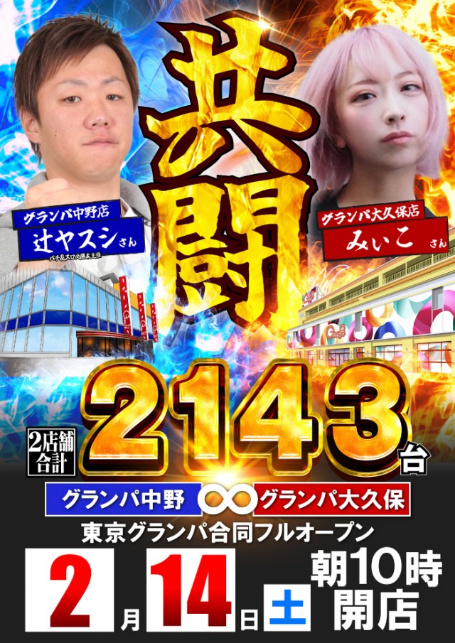 共闘🌈グランパ中野・大久保スロット抽選9:30パチンコ並び順