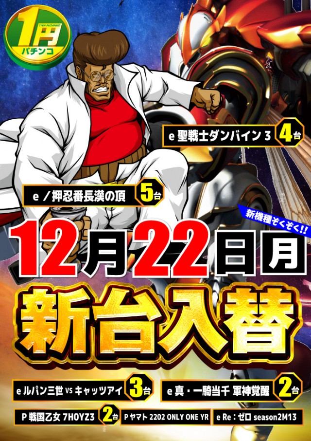 12/22大型新台入替 スロット抽選9:30 パチンコ並び順