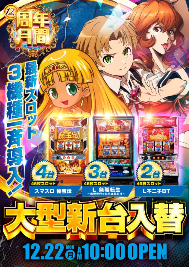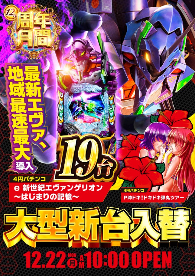 🌈20周年月間 12/22大型新台入替スロット抽選9:30