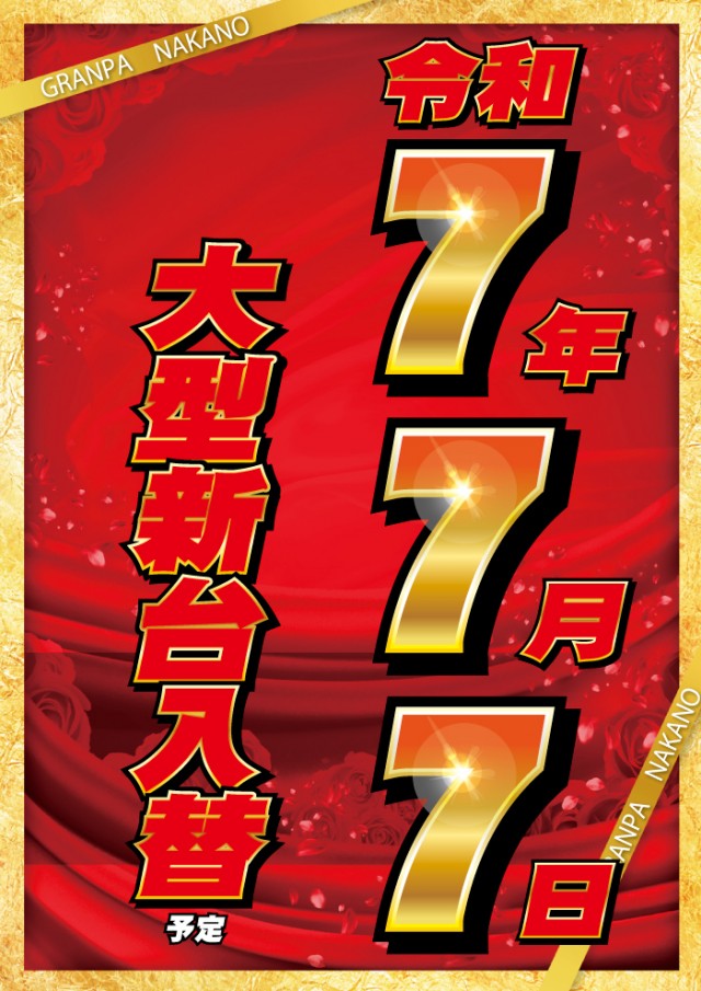🌈R7.7.7大型新台入替スロット抽選9:30パチンコ並び順