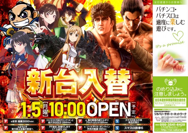 明日 ★新装開店★ パチンコ⑥機種 スロット②機種 導入!