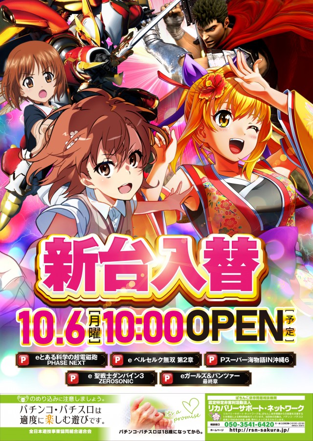 次週 ★新装開店★ パチンコ⑤機種 スロット④機種 導入!