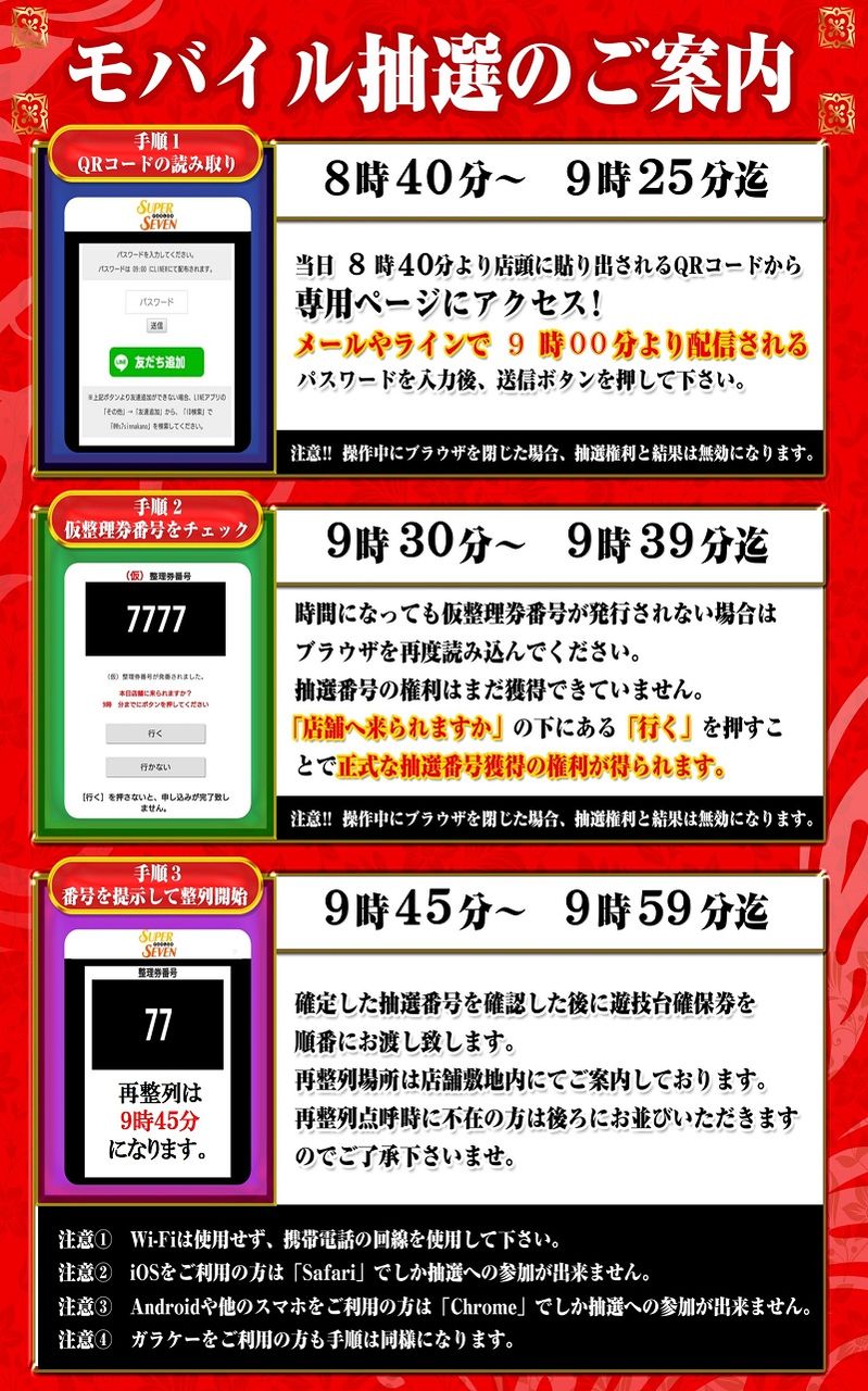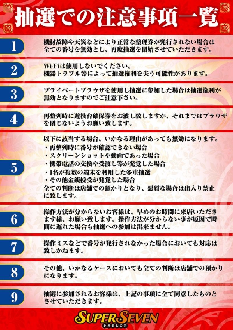 パチンコ:並び順 スロット:777CON-PASSでの抽選 |
