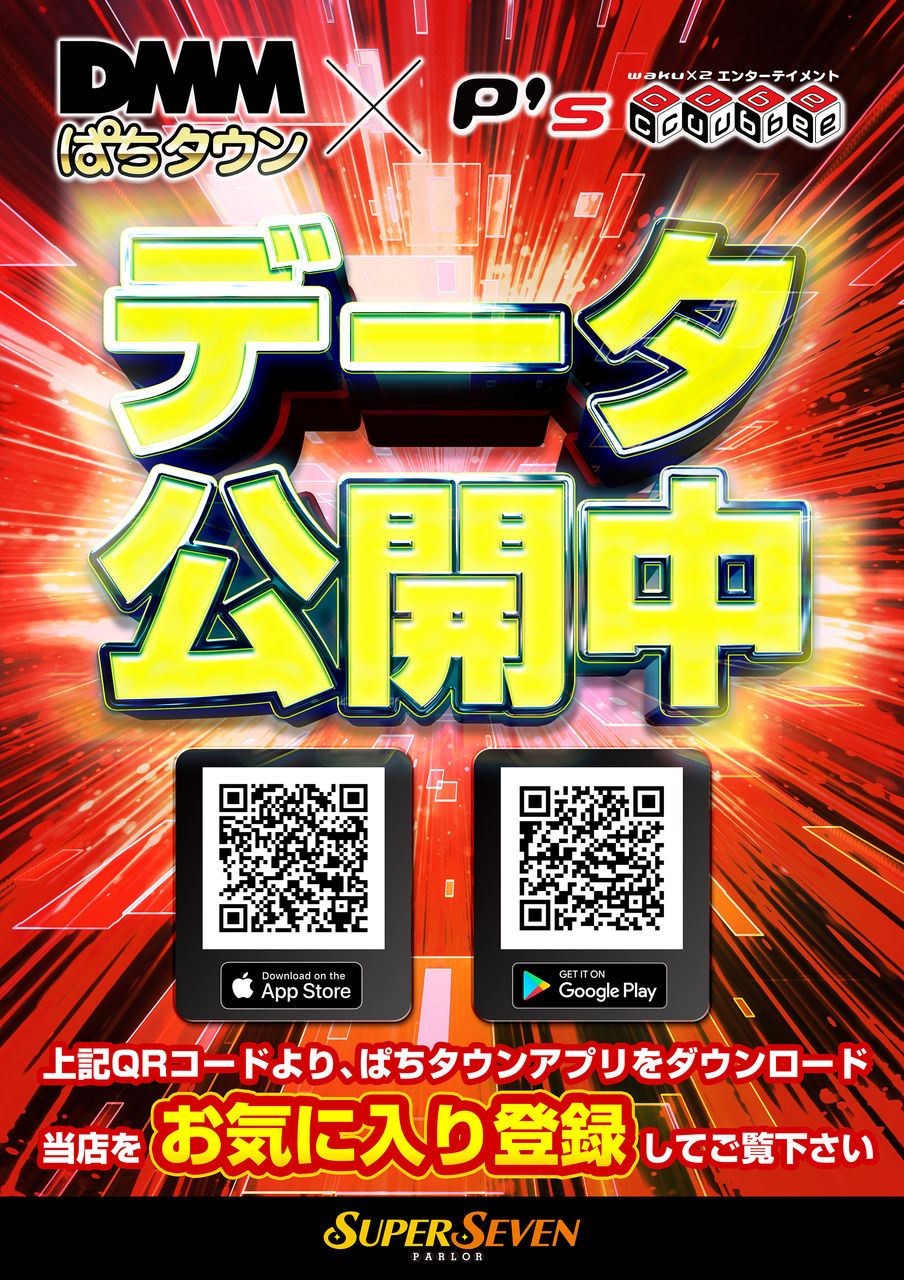 公開データはチェック必須です! DMMぱちタウンのアプリをダウンロード➡スーパーセブン新中野店を検索➡店舗をお気に入り登録してご覧下さい☆