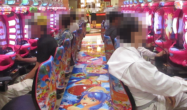 「ぱちんこCR真・北斗無双」や「CR真・花の慶次2」を中心に、パチンコも盛況。イキイキとした表情でハンドルを握る姿もみられるなど、シマ全体が活気づいていた。