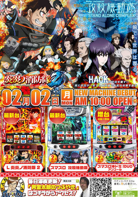 今冬~今春に導入された新台・準新台はもちろん、人気・定番機種を軸にお店全体の機種を活性化させられるように濃厚なメッセージを込めて頑張らせていただきます!