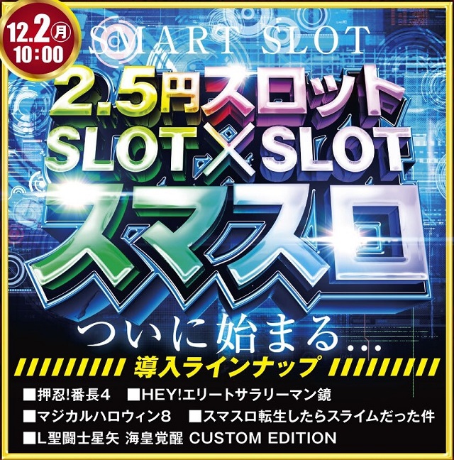 いよいよ12月突入!!12月2日2.5スロ スマスロ始まる…