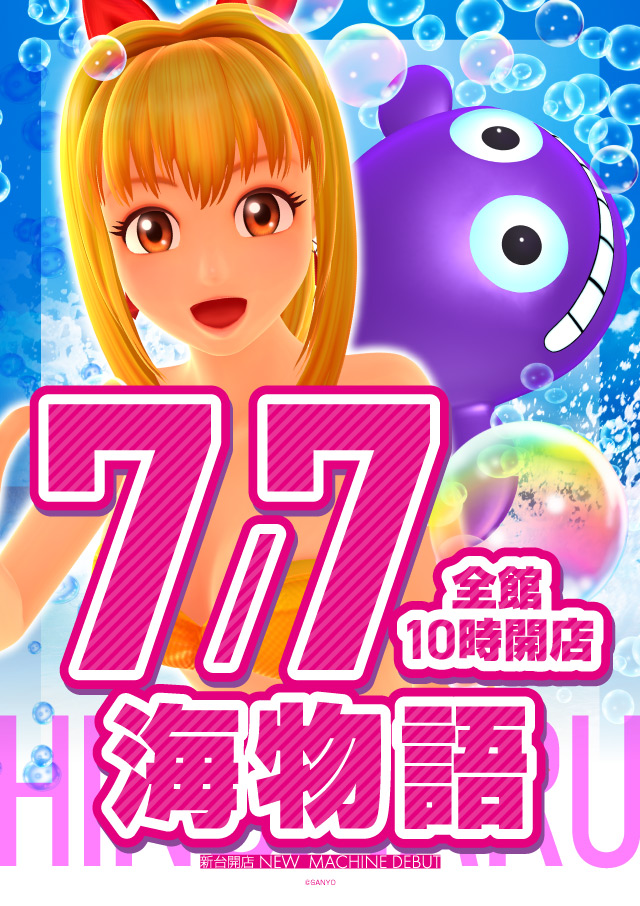 本日令和7年7月7日(月)新台開店!全館10時開店!