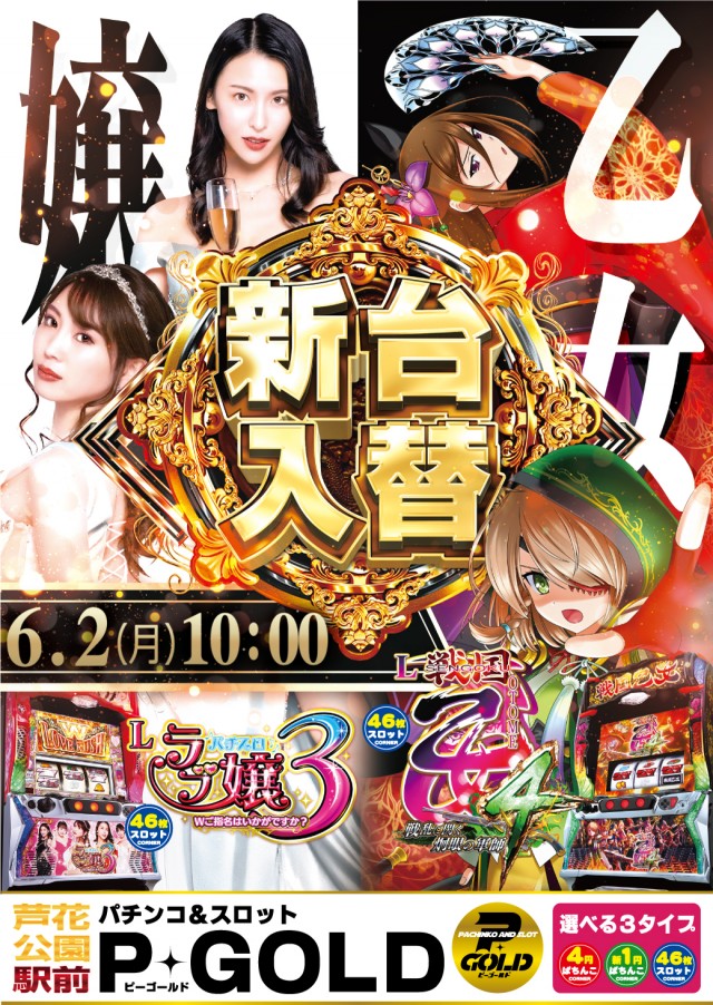 芦花公園駅すぐ近くのパチンコ店、**P・GOLD(ピー・ゴールド)**です♪今日はお知らせがひとつ!