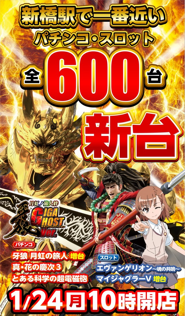 ★☆★新橋UNO★新台入替★牙狼・慶次3・超電磁砲導入!★