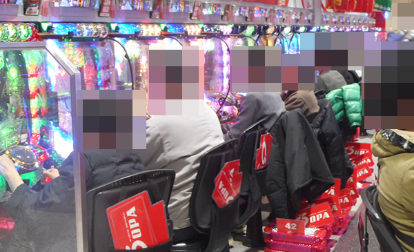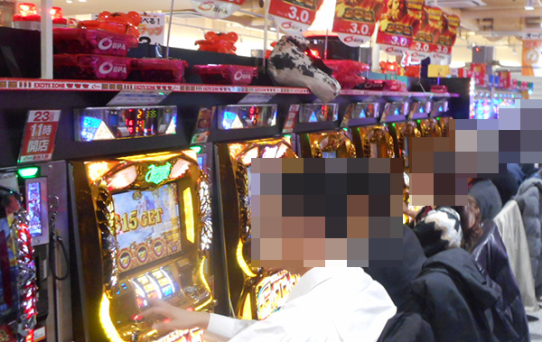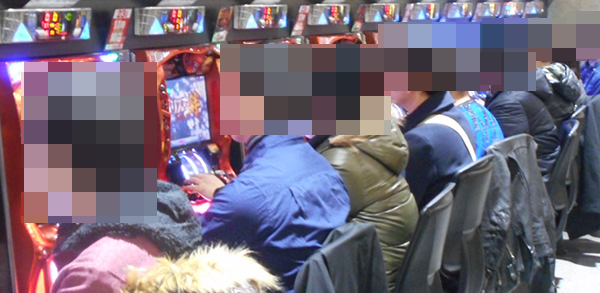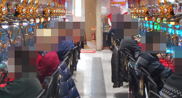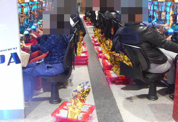 4円パチンコの様子をうかがうと、「CR牙狼 魔戒ノ花」がほぼフル稼働。輝いているような笑顔のプレイヤーも多く、華やかな光景が広がっていた。