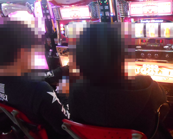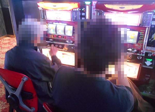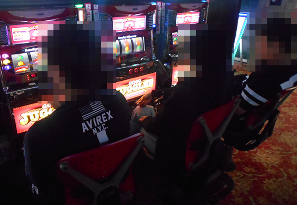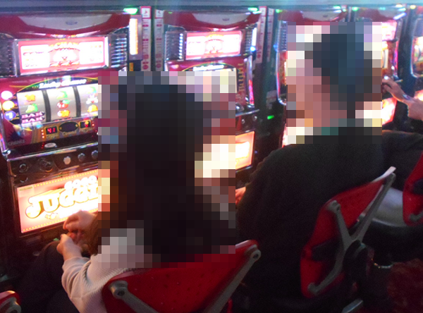通路が広く開放感のある空間を1階から順にみていくと、まずはパチンココーナーにおいて、ステキなシーンを確認した。