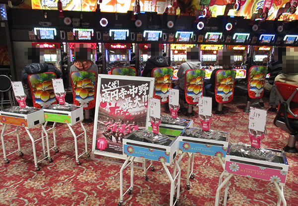 開店直後は21.27円パチスロが注目されており、「SLOT魔法少女まどか☆マギカ」と「バジリスク~甲賀忍法帖~絆」はいち早く満席。