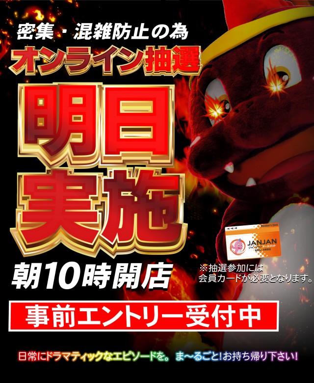 ジャンジャンマールゴット!!明日の入場はオンライン抽選♪♪