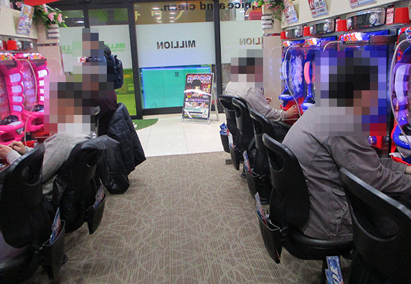開店直後の4円パチンコをみると、海物語シリーズの注目度が高い。