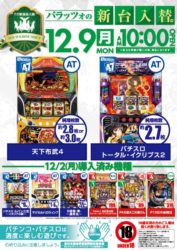 ☆明日新台入替☆パチンコ・スロット一挙7機種導入!!