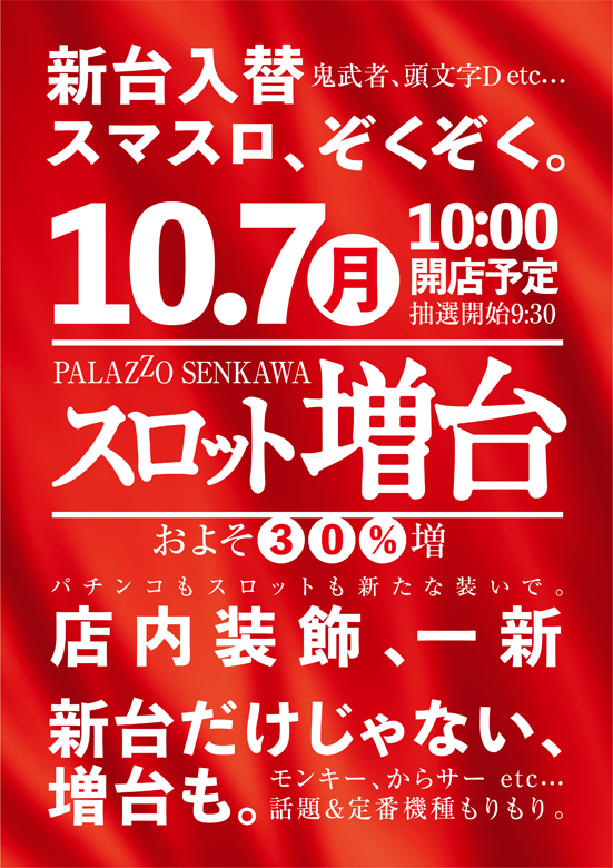 ★明日★10月7日(月) 【S増台&入替】10:00 開店!