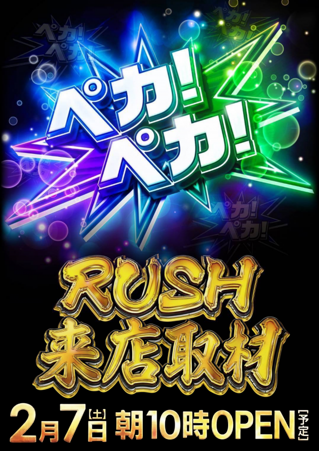 🔥明日2月7日(土)🔥ペカペカラッシュ来店取材🔥