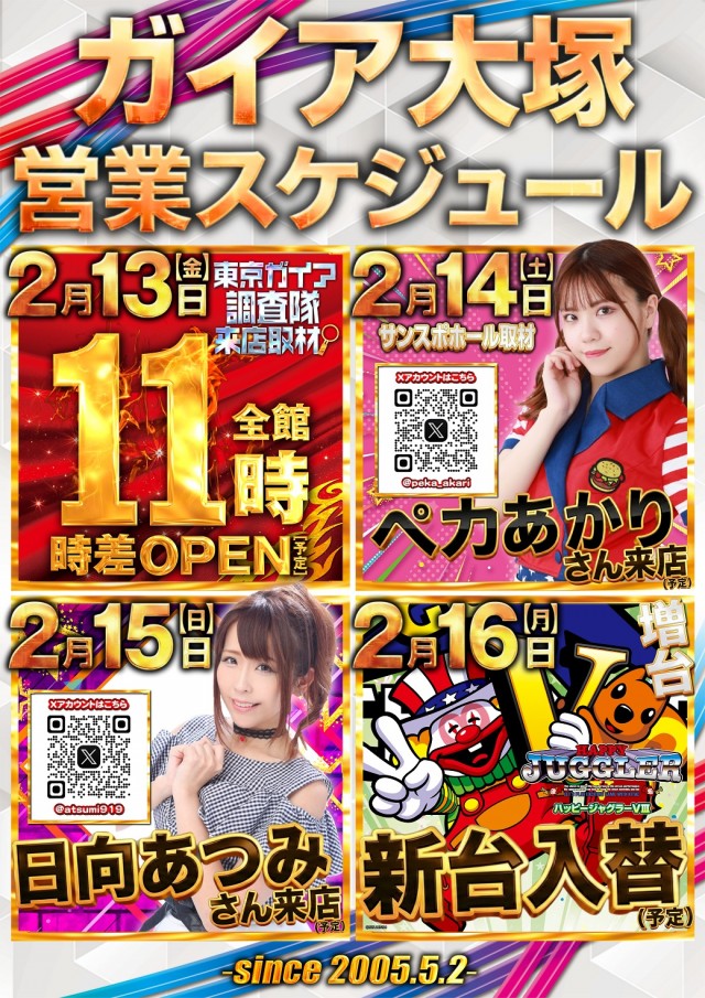 😈本日2月13日(金)😈全館朝11時時差OPEN😈