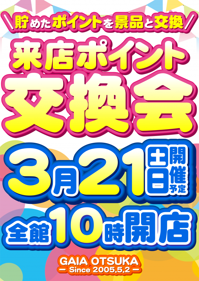 🎁本日3月21日(土)🎁来店ポイント交換会開催🎁