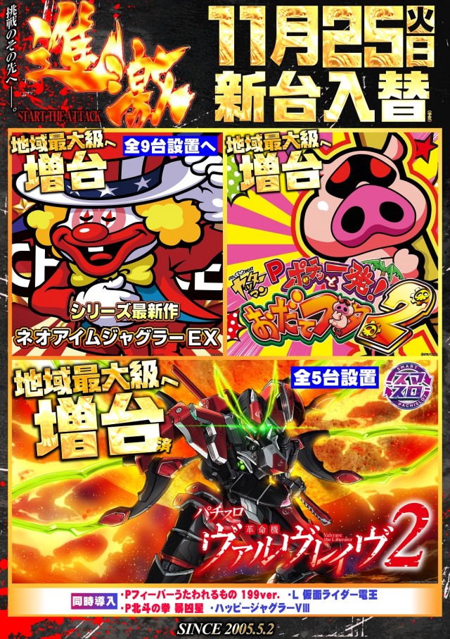 🤡本日11月25日(火)新台入替🤡ネオアイムジャグラー増台🤡