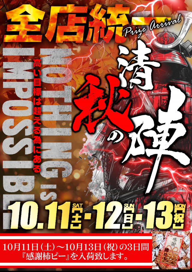 🍂本日10月11日(土)~13日(祝)🍂清秋の陣開催🍂