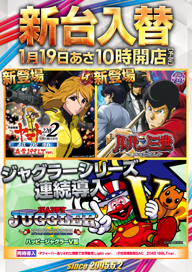 🔥明日1月19日(月)🔥全店長X一斉配信×新台入替🔥