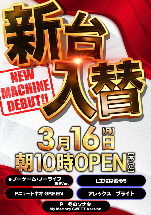 👮明日3月16日(月)新台入替👮人気機種銭形5増台👮