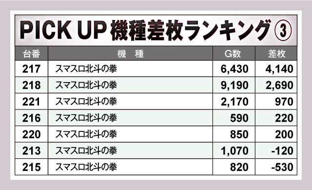 そして特に凄まじい熱気を放っていたのが、上記のピックアップ3機種だ。「スマスロ マギアレコード 魔法少女まどか☆マギカ外伝」「スマスロスーパーブラックジャック」「スマスロ北斗の拳」のいずれからも+4,000枚超の好記録が誕生。これらのシマは終日高稼働となり、遊技するファンは確かな手応えを掴んでいたに違いない。まさにこの日の主役と呼ぶにふさわしい盛り上がりであった。