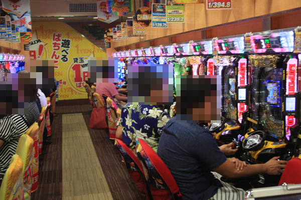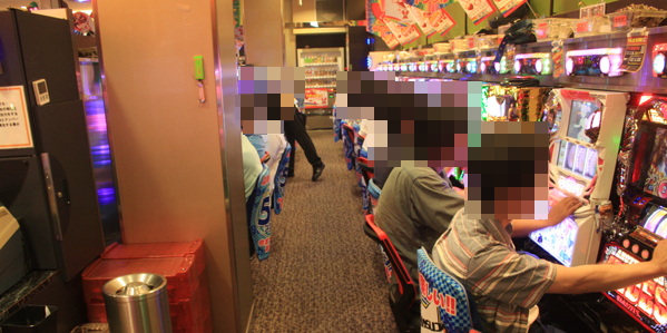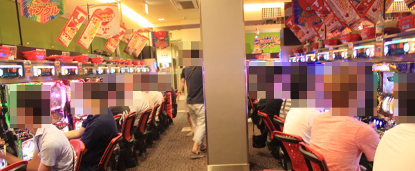 20円パチスロと5円パチスロが設置されている2階フロアも高稼働で、嬉しそうに遊技をしているプレイヤーも多数。