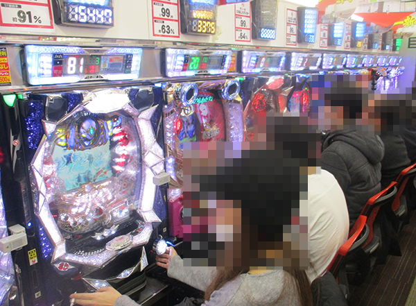 午後の4円パチンコでは、「CR真・花の慶次2」と「ぱちんこCR真・北斗無双」が盛況。イキイキとした表情で遊技をおこなうプレイヤーも目立っており、明るいムードが感じられた。