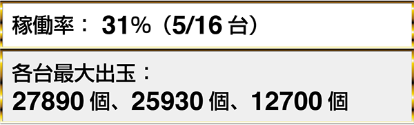 ・『ぱちんこCR真・北斗無双』に10000個を超える出玉を獲得しているプレイヤーが6名以上