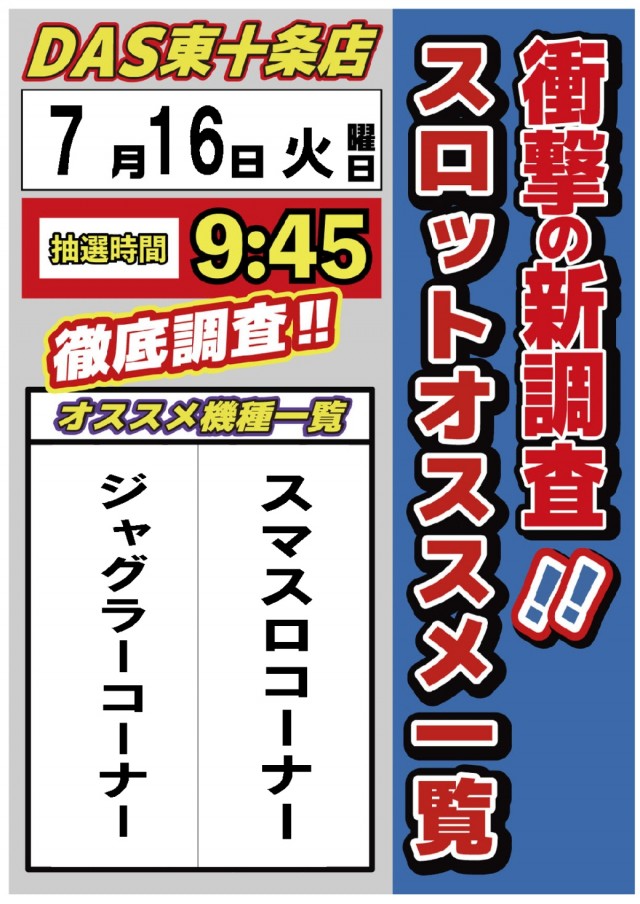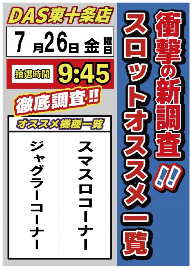 明日No.1🌈9時45分抽選開始🌈DAS東十条店🌈