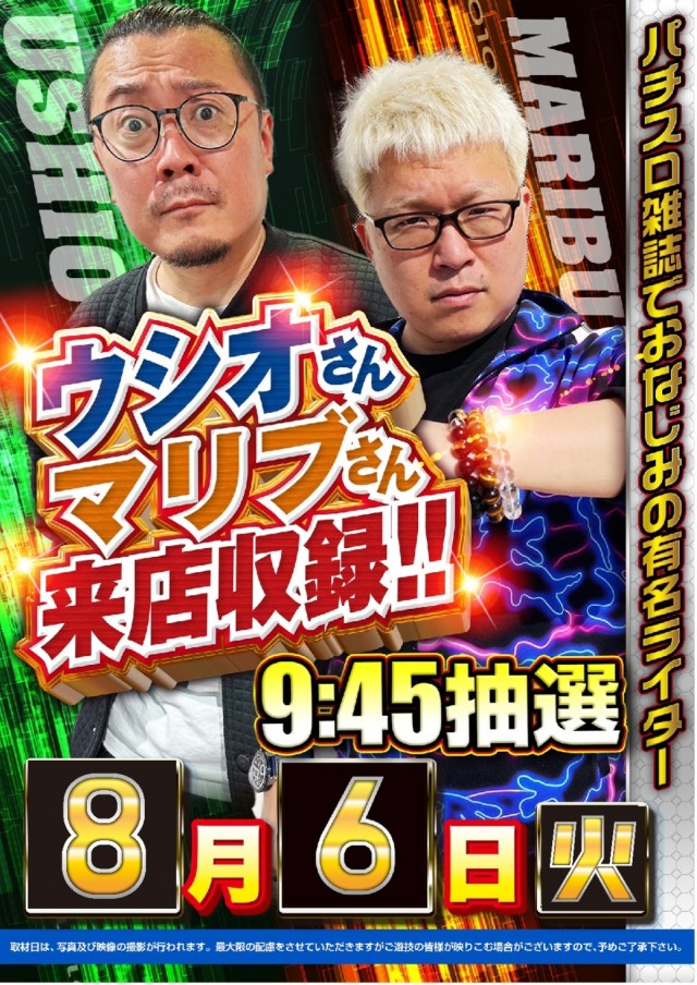 明日ウシオさん&マリブさん来店収録🌈9時45分抽選開始🌈
