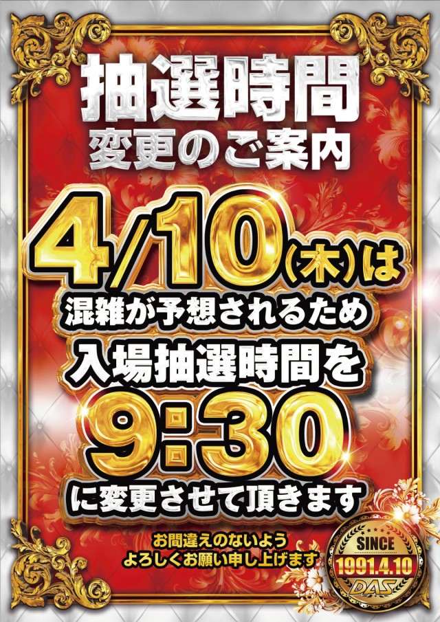 4月10日🌈🌈34周年🌈🌈抽選9:30~🌈🌈DAS東十条🌈🌈