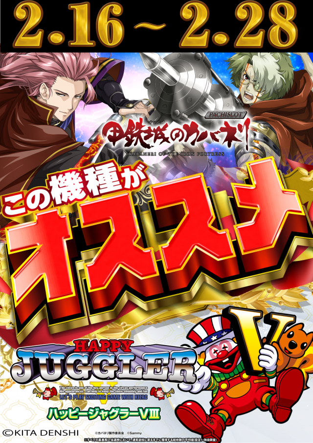 おすすめ変更日🌟「ハッピージャグラー」「甲鉄城のカバネリ」🌟