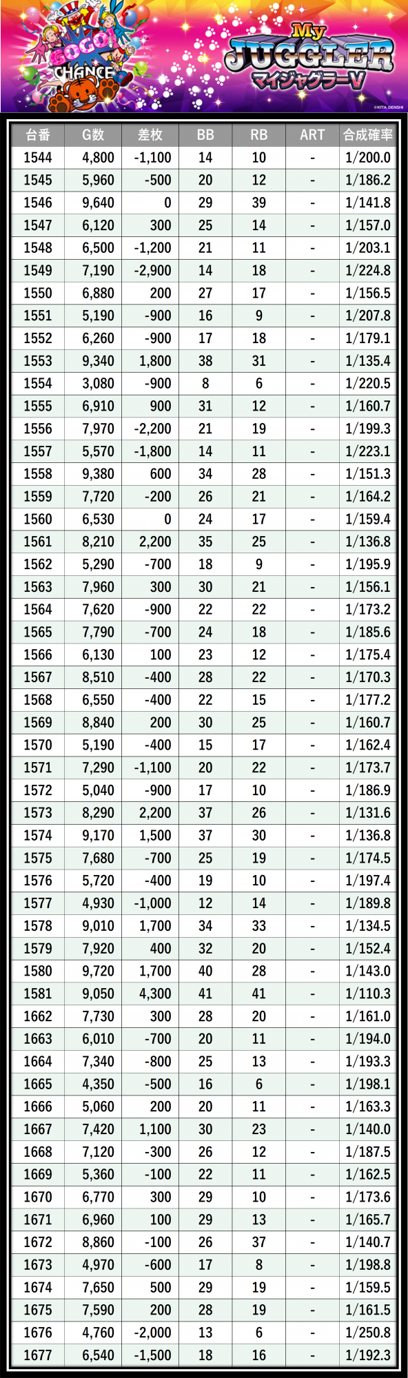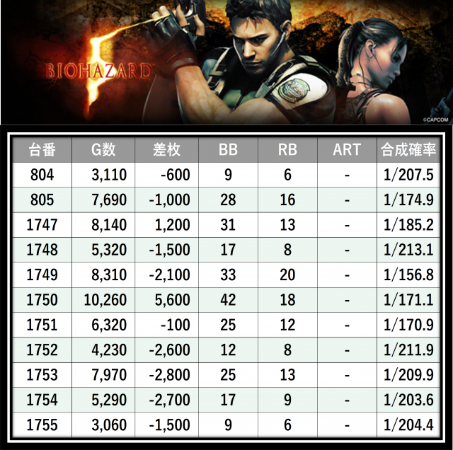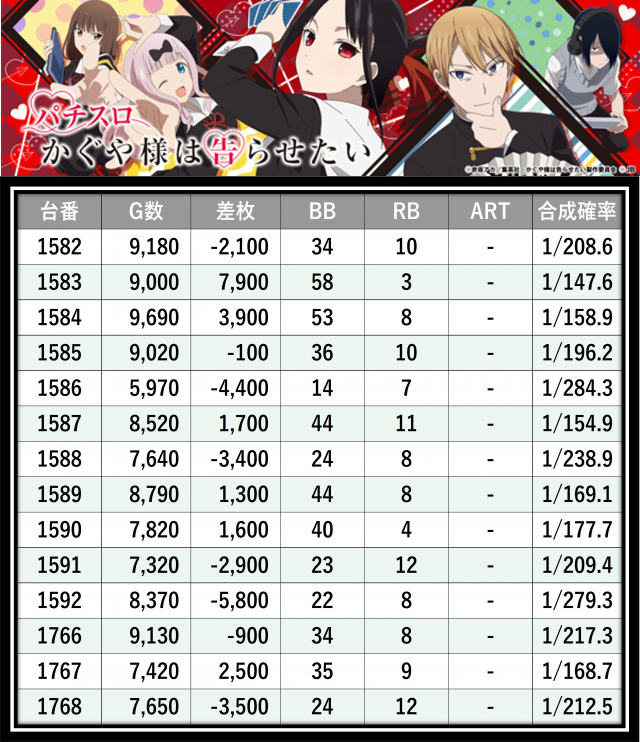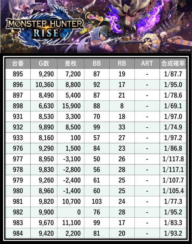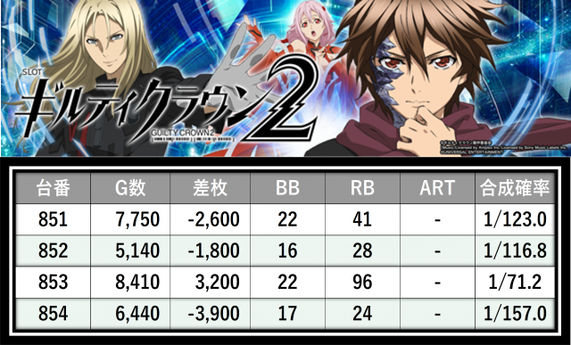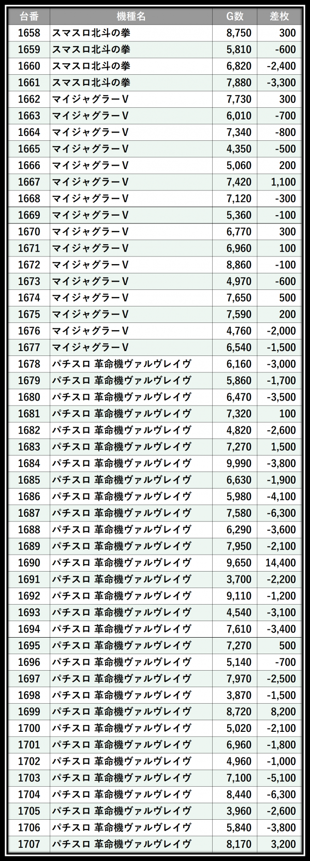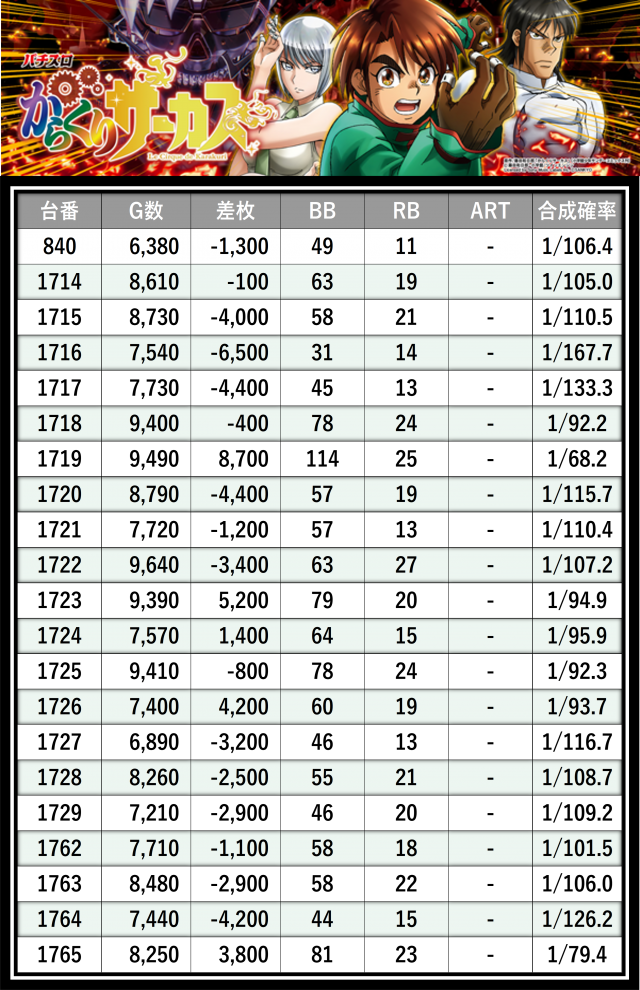 ※差枚数順に掲載しています