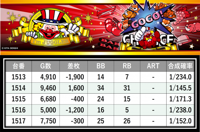その結果の中から、ぱちタウンが注目すべきポイントを厳選してユーザーにお届け!プレイヤーが楽しんだ一日を下記データにて振り返ってみて欲しい。