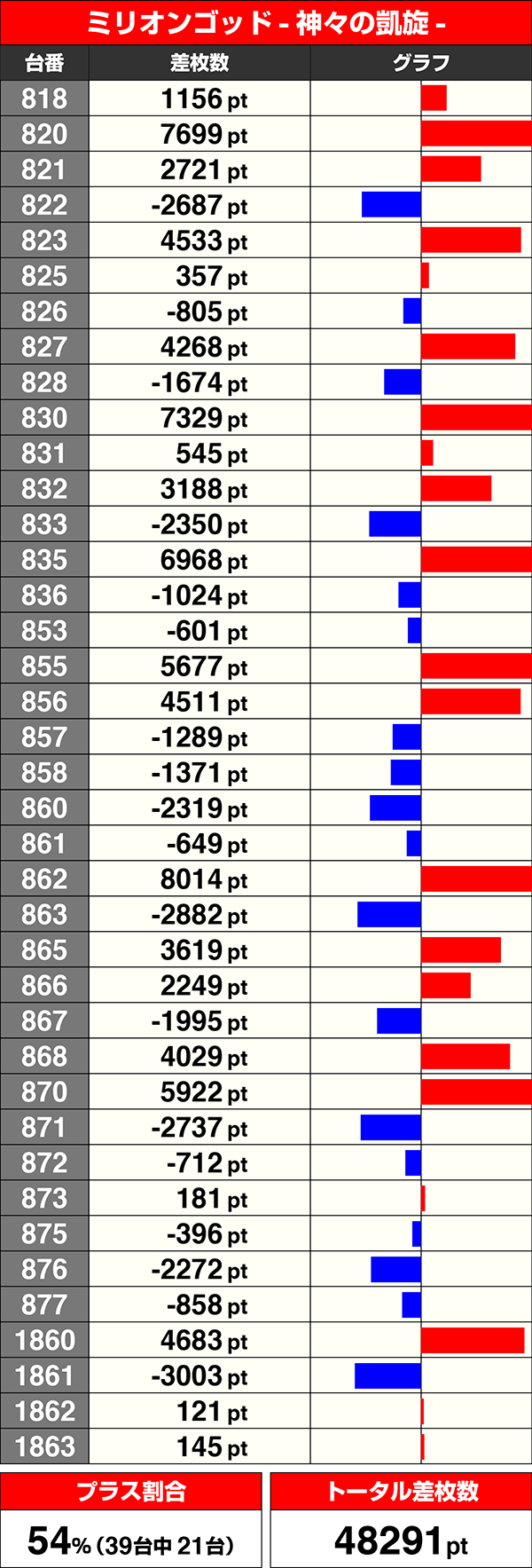 『ミリオンゴッド-神々の凱旋-』のトータル差枚数は48291pt。
